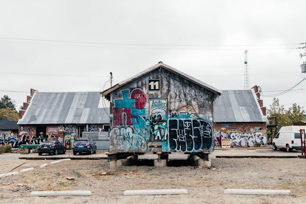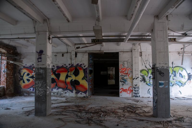 Heavy graffiti on durable surfaces like concrete and brick